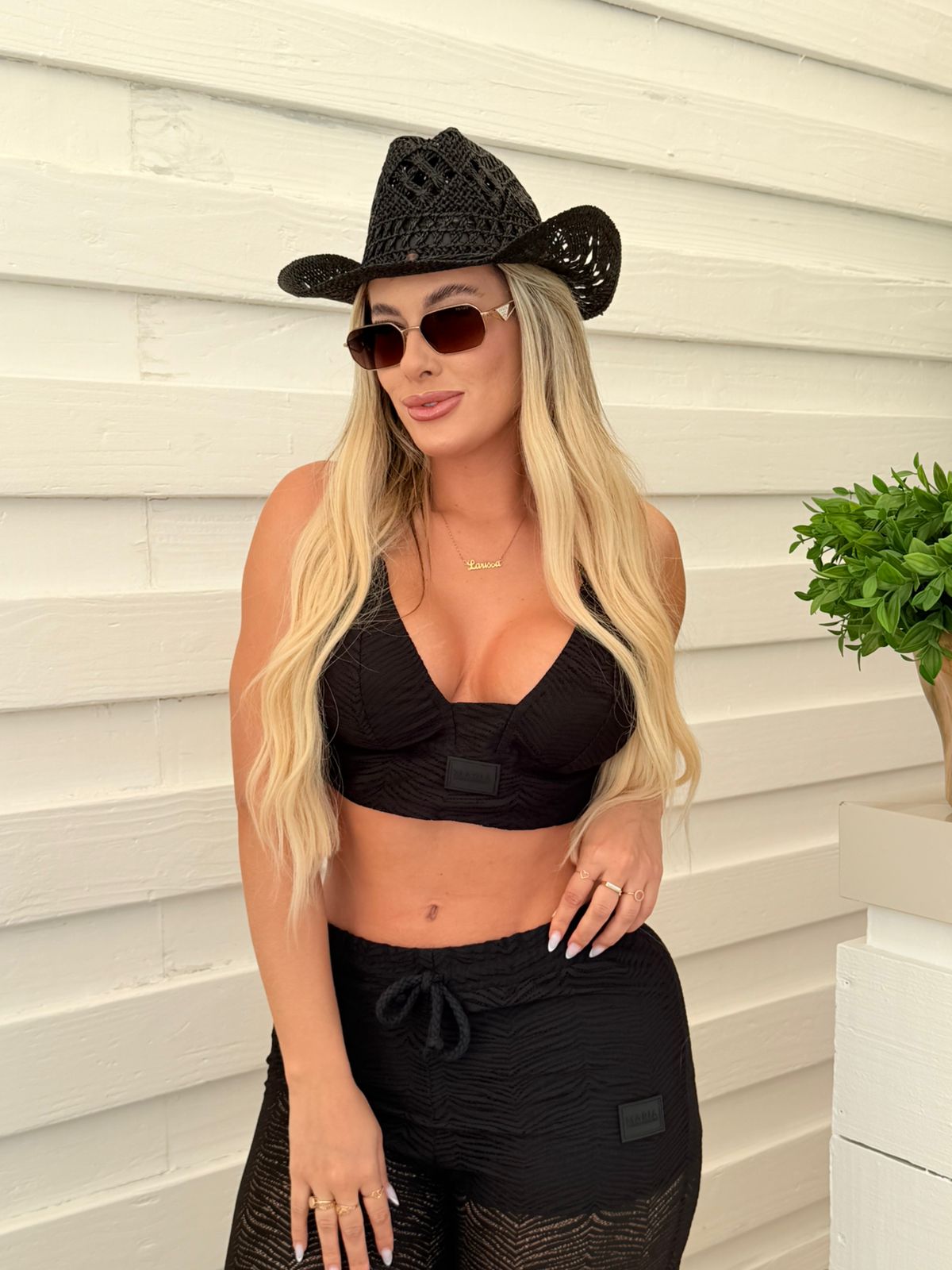 CONJUNTO CROPPED E CALCA PRAIA RESORT CROCHE MARIA GUEIXA