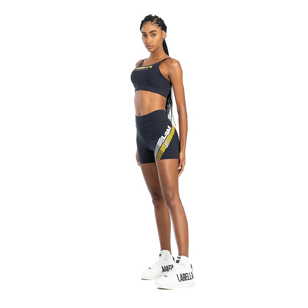 A classica linha fitness que a Labella sempre traz dessa vez veio com uma nova cara e paleta. Dessa vez vem em preto e branco com a novidade do amarelo e prata no design das estampas.